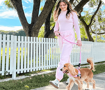 The harness goes on in seconds, even with a bouncing dog. More walking, less struggling.