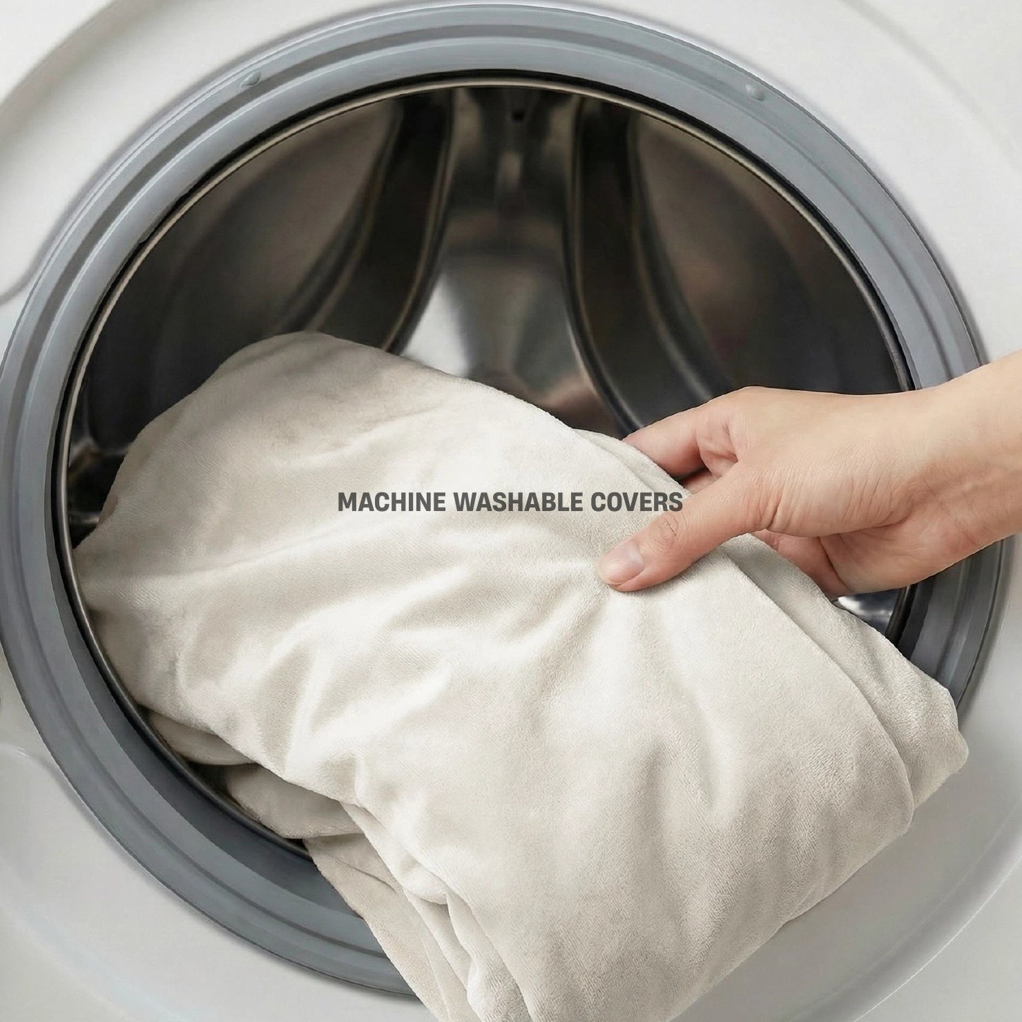 Die abnehmbaren Bezüge lassen sich per Reißverschluss öffnen und bei unter 30 Grad in der Waschmaschine waschen. Verwenden Sie zum Waschen des Bezugs ein Schonwaschprogramm mit Feinwaschmittel.